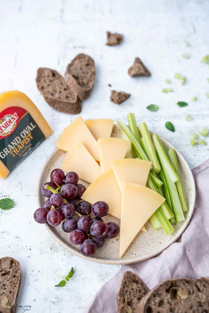 Kremastoj teksturi i blago slanom ukusu Grand Oval Trapista odgovara svježina celera, grožđa i šljiva.