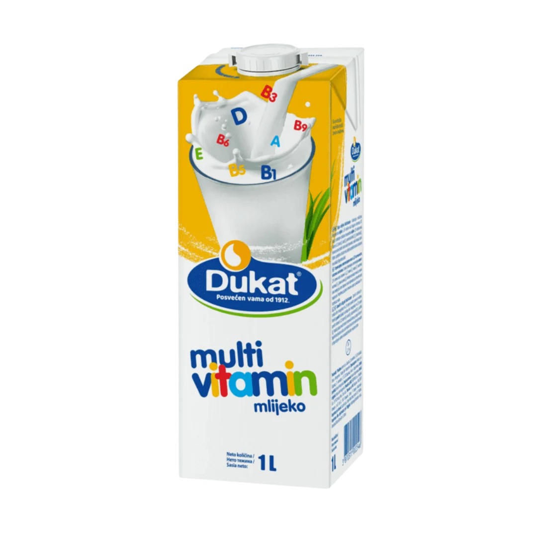 | Dodatne informacije | Dukat trajno mlijeko s vitaminom D proizvedeno je od svježeg sirovog mlijeka najvišeg kvaliteta. Ravnoteža bjelančevina, masti, ugljenih hidrata, minerala i vitamina čini mlijeko najpotpunijom prirodnom namirnicom, neizostavnom u svakodnevnoj ishrani. Prerađeno najsavremenijom tehnologijom, Dukat trajno mlijeko odlikuje prirodan ukus i bogatstvo sačuvanih hranjivih sastojaka. Dukat trajno mlijeko obogaćeno je vitaminom D koji doprinosi održavanju normalnih kostiju. Preporučen dnevni unos vitamina D iznosi 5 μg, a već tri velike čaše Dukat trajnog mlijeka s vitaminom D zadovoljavaju preporučen dnevni unos vitamina D. Osim toga, dnevnim unosom dvije šoljice Dukat mlijeka u organizam unosimo 600 mg kalcijuma, odnosno 75 posto dnevnih potreba za kalcijumom za odrasle osobe. |